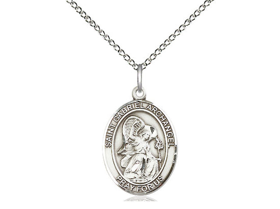 Sterling Silver St. Gabriel the Archangel Pendant Necklace 3/4 x 1/2 - 18 Inch Chain