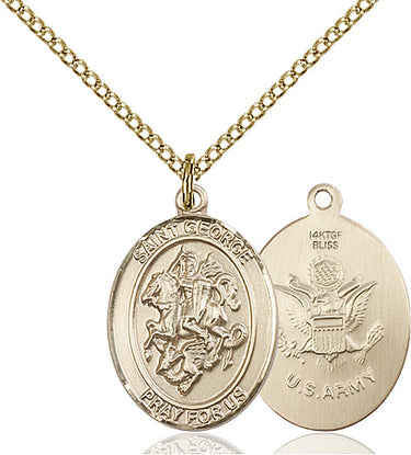 Exquisite Gold Filled Saint George / Army Necklace (3/4 x 1/2) on 18 Chain with Lobster Clasp - Handmade in the USA by Bliss