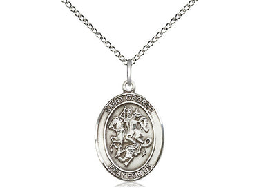 Sterling Silver St. George Pendant Necklace 3/4 x 1/2 - 18 Inch Chain