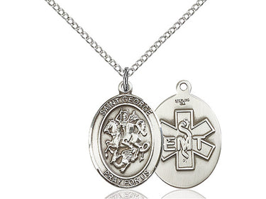 Exquisite Sterling Silver Saint George / EMT Necklace (3/4 x 1/2) on 18 Chain with Lobster Clasp - Handmade in the USA by Bliss