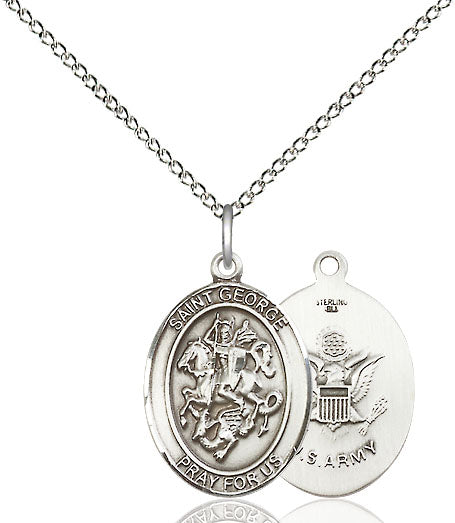 Exquisite Sterling Silver Saint George / Army Necklace (3/4 x 1/2) on 18 Chain with Lobster Clasp - Handmade in the USA by Bliss