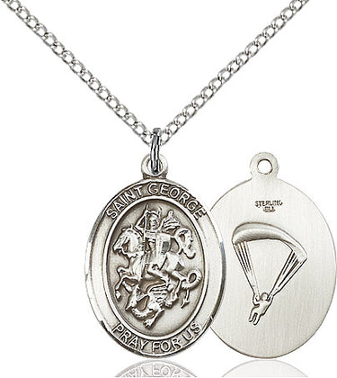 Sterling Silver St. George/Paratrooper Pendant Necklace 3/4 x 1/2 - 18 Inch Chain