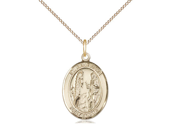 14kt Gold Filled St. Genevieve Pendant Necklace 3/4 x 1/2 - 18 Inch Chain