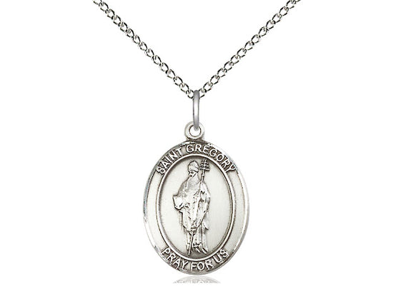 Sterling Silver St. Gregory the Great Pendant Necklace 3/4 x 1/2 - 18 Inch Chain