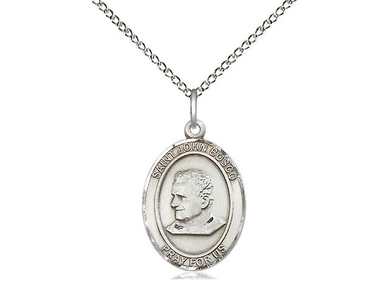 Sterling Silver St. John Bosco Pendant Necklace 3/4 x 1/2 - 18 Inch Chain