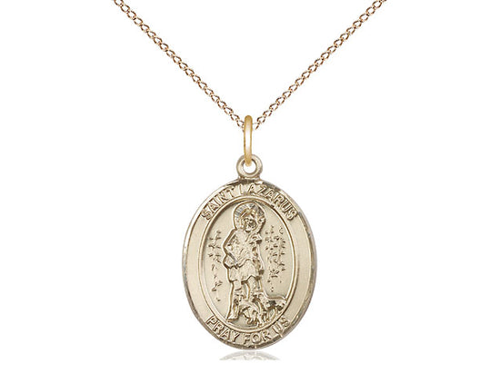 14kt Gold Filled St. Lazarus Pendant Necklace 3/4 x 1/2 - 18 Inch Chain