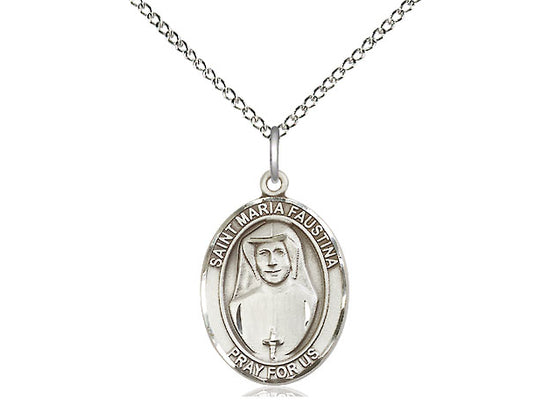Sterling Silver St. Maria Faustina Pendant Necklace 3/4 x 1/2 - 18 Inch Chain