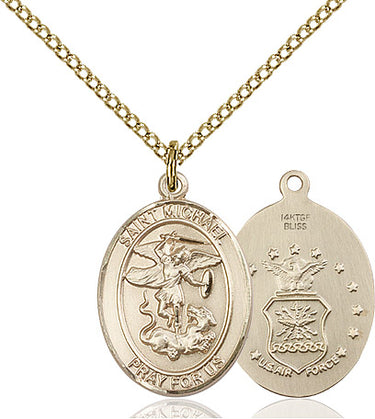 14kt Gold Filled St. Michael / Air Force Pendant Necklace 3/4 x 1/2 - 18 Inch Chain