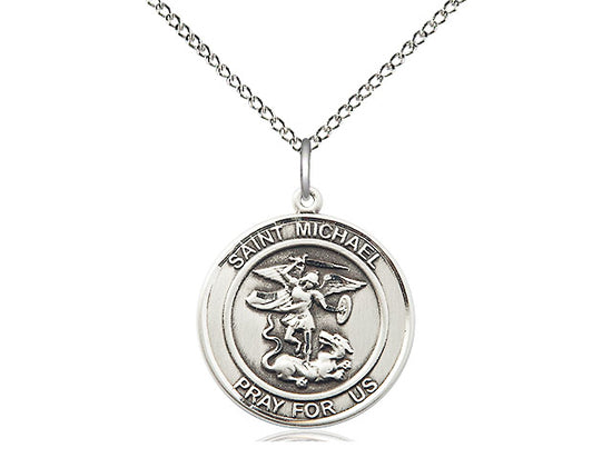 Sterling Silver St. Michael the Archangel Pendant Necklace 3/4 x 5/8 - 18 Inch Chain