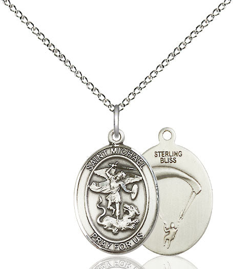 Exquisite Sterling Silver Saint Michael / Paratrooper Necklace (3/4 x 1/2) on 18 Chain with Lobster Clasp - Handmade in the USA by Bliss
