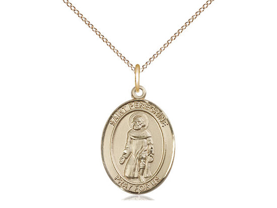 14kt Gold Filled St. Peregrine Laziosi Pendant Necklace 3/4 x 1/2 - 18 Inch Chain