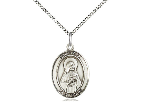 Sterling Silver St. Rita of Cascia Pendant Necklace 3/4 x 1/2 - 18 Inch Chain