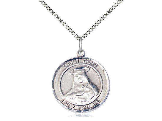 Sterling Silver St. Rose of Lima Pendant Necklace 3/4 x 5/8 - 18 Inch Chain