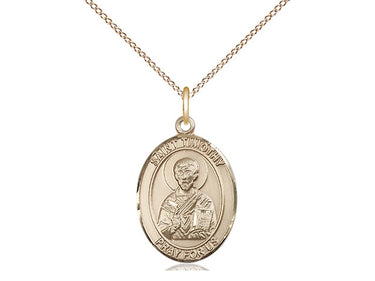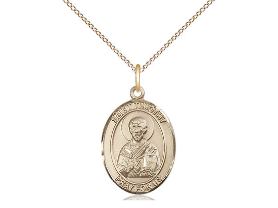 14kt Gold Filled St. Timothy Pendant Necklace 3/4 x 1/2 - 18 Inch Chain