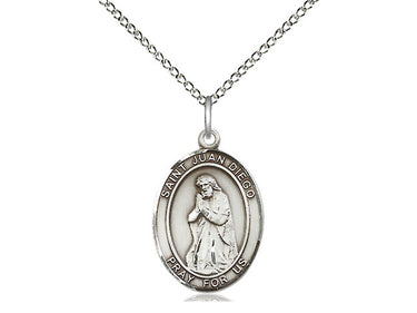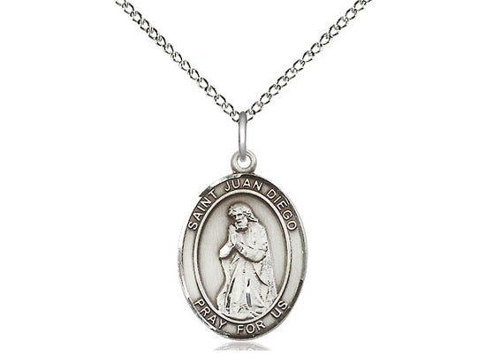 Sterling Silver St. Juan Diego Pendant Necklace 3/4 x 1/2 - 18 Inch Chain