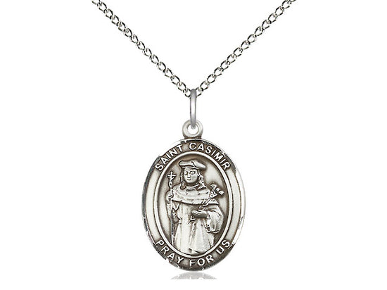 Sterling Silver St. Casimir of Poland Pendant Necklace 3/4 x 1/2 - 18 Inch Chain