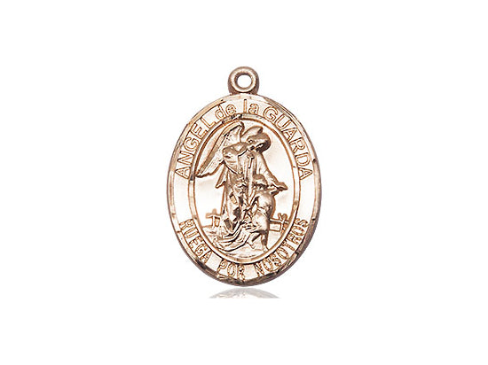14kt Solid Gold Angel de la Guardia Medal 3/4 x 1/2