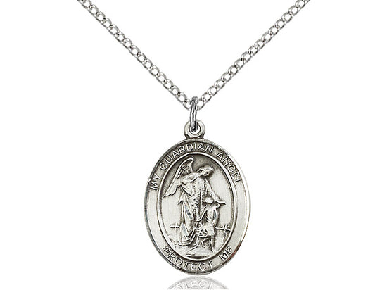 Sterling Silver Guardian Angel Pendant Necklace 3/4 x 1/2 - 18 Inch Chain