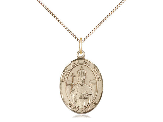 14kt Gold Filled St. Leo the Great Pendant Necklace 3/4 x 1/2 - 18 Inch Chain