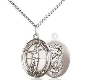 Sterling Silver St. Christopher/Volleyball Pendant Necklace 3/4 x 1/2 - 18 Inch Chain