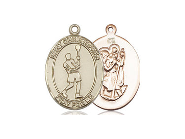 14kt Solid Gold St. Christopher/Lacrosse Medal 3/4 x 1/2