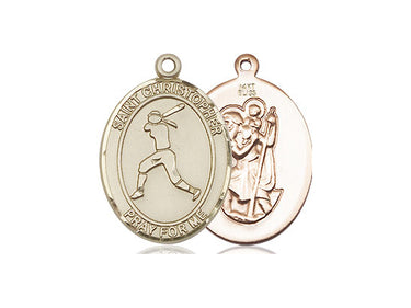 14kt Solid Gold St. Christopher/Softball Medal 3/4 x 1/2