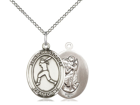 Sterling Silver St. Christopher/Softball Pendant Necklace 3/4 x 1/2 - 18 Inch Chain