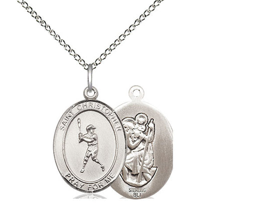 Sterling Silver St. Christopher/Baseball Pendant Necklace 3/4 x 1/2 - 18 Inch Chain