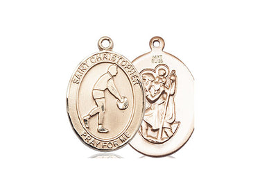 14kt Solid Gold St. Christopher/Basketball Medal 3/4 x 1/2