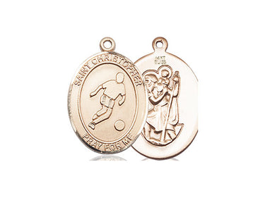 14kt Solid Gold St. Christopher/Soccer Medal 3/4 x 1/2