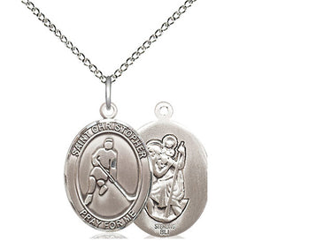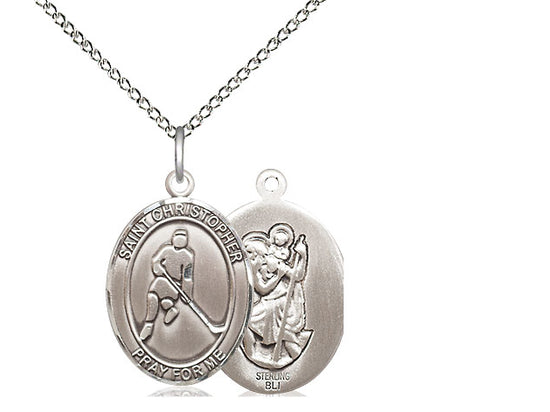 Sterling Silver St. Christopher/Ice Hockey Pendant Necklace 3/4 x 1/2 - 18 Inch Chain