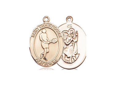 14kt Solid Gold St. Christopher/Tennis Medal 3/4 x 1/2