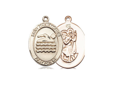 14kt Solid Gold St. Christopher/Swimming Medal 3/4 x 1/2
