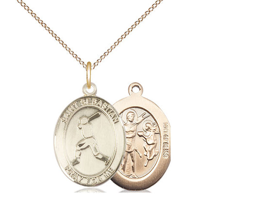 14kt Gold Filled St. Sebastian/Baseball Pendant Necklace 3/4 x 1/2 - 18 Inch Chain