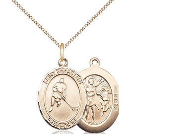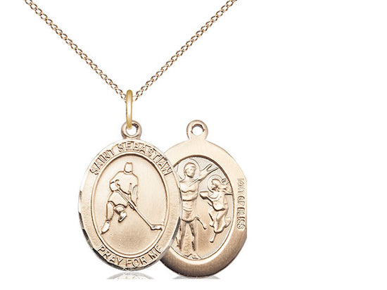 14kt Gold Filled St. Sebastian/Ice Hockey Pendant Necklace 3/4 x 1/2 - 18 Inch Chain