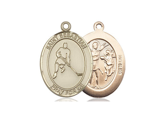 14kt Solid Gold St. Sebastian/Ice Hockey Medal 3/4 x 1/2