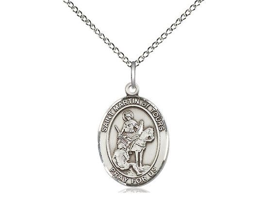 Sterling Silver St. Martin of Tours Pendant Necklace 3/4 x 1/2 - 18 Inch Chain