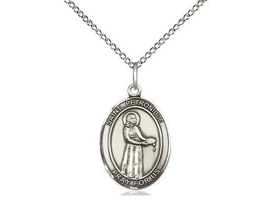 Sterling Silver St. Petronille Pendant Necklace 3/4 x 1/2 - 18 Inch Chain