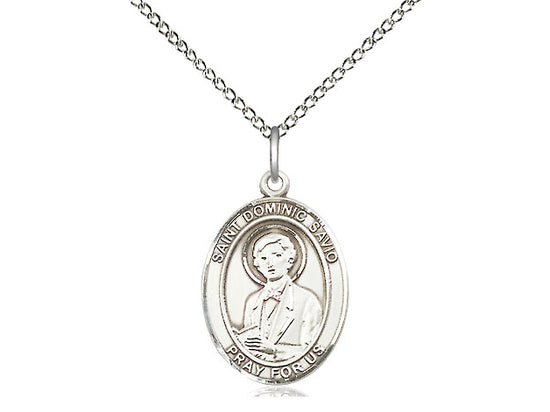Sterling Silver St. Dominic Savio Pendant Necklace 3/4 x 1/2 - 18 Inch Chain