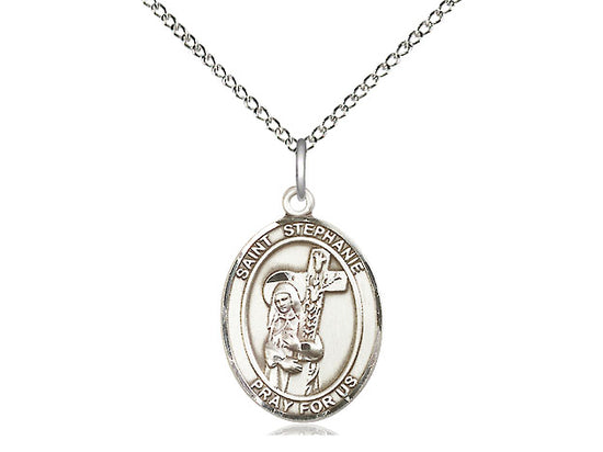Sterling Silver St. Stephanie Pendant Necklace 3/4 x 1/2 - 18 Inch Chain