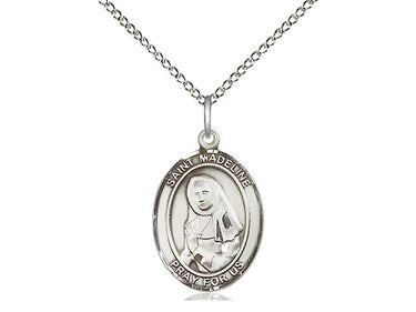 Embrace your faith with timeless elegance. This exquisite Sterling Silver Saint Madeline Sophie Barat Necklace, measuring 3/4 x 1/2, is meticulously handcrafted in the USA by Bliss, a renowned name in religious jewelry. The durable 18-inch Sterling Silver curb chain gracefully drapes with a secure lobster clasp for a comfortable, everyday wear. The Saint Madeline Sophie Barat is a patron saint of sacred heart.
