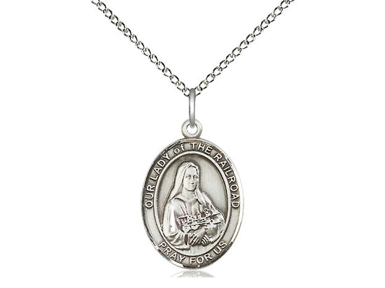 Sterling Silver Our Lady of the Railroad Pendant Necklace 3/4 x 1/2 - 18 Inch Chain