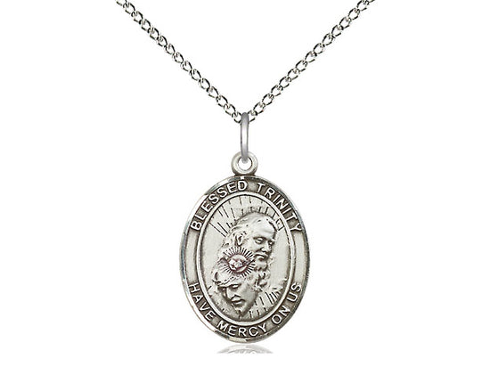 Sterling Silver Blessed Trinity Pendant Necklace 3/4 x 1/2 - 18 Inch Chain