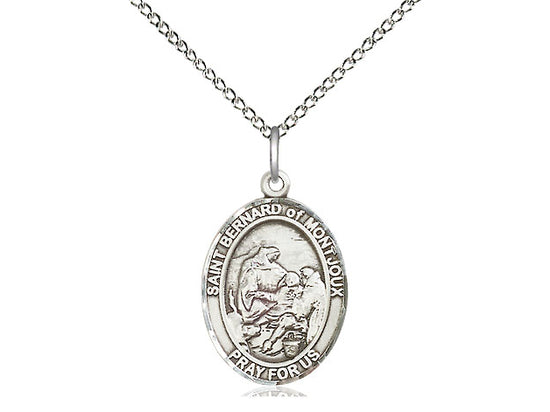 Embrace your faith with timeless elegance. This exquisite Sterling Silver Saint Bernard of Montjoux Necklace, measuring 3/4 x 1/2, is meticulously handcrafted in the USA by Bliss, a renowned name in religious jewelry. The durable 18-inch Sterling Silver curb chain gracefully drapes with a secure lobster clasp for a comfortable, everyday wear. The Saint Bernard of Montjoux is a patron saint of skiers, mountain climbers.