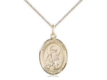 14kt Gold Filled St. Athanasius Pendant Necklace 3/4 x 1/2 - 18 Inch Chain