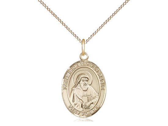 Exquisite Gold Filled Saint Bede the Venerable Necklace (3/4 x 1/2) on 18 Chain with Lobster Clasp - Handmade in the USA by Bliss
