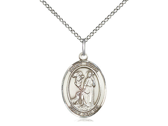 Sterling Silver St. Roch Pendant Necklace 3/4 x 1/2 - 18 Inch Chain