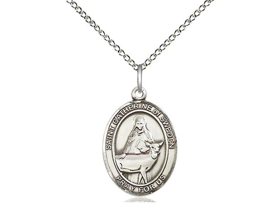 Sterling Silver St. Catherine of Sweden Pendant Necklace 3/4 x 1/2 - 18 Inch Chain