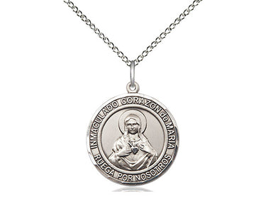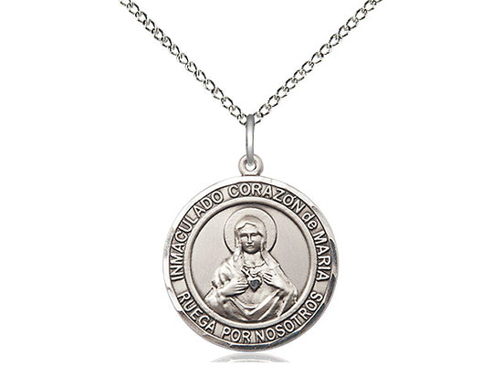Sterling Silver Corazon Inmaculado De Maria Pendant Necklace 3/4 x 5/8 - 18 Inch Chain