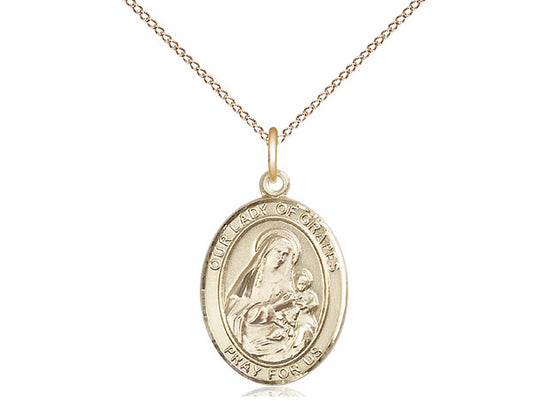 14kt Gold Filled Our Lady of Grapes Pendant Necklace 3/4 x 1/2 - 18 Inch Chain
